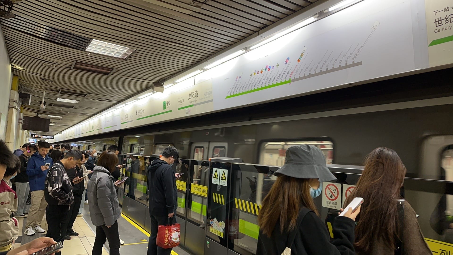 一大早和同事走了1公里去坐地铁,18号转2号到终点