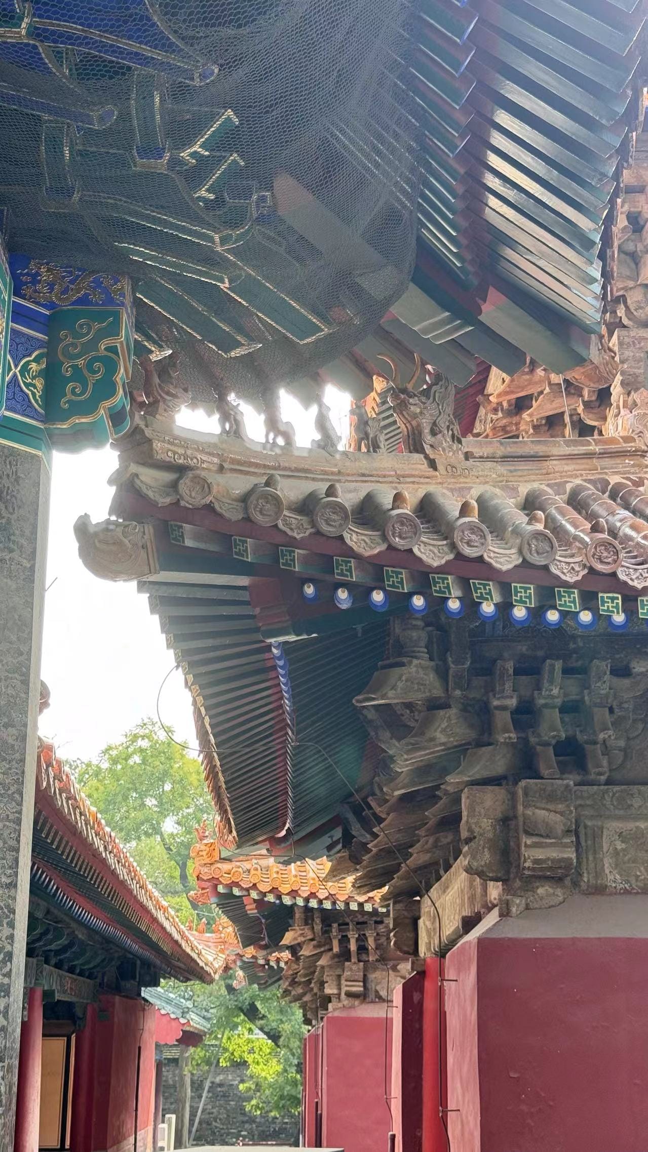 远处的两座大殿,由于建筑的年份相差较远,左边的房角,修到了右边的两层之间,被称为“勾心”。