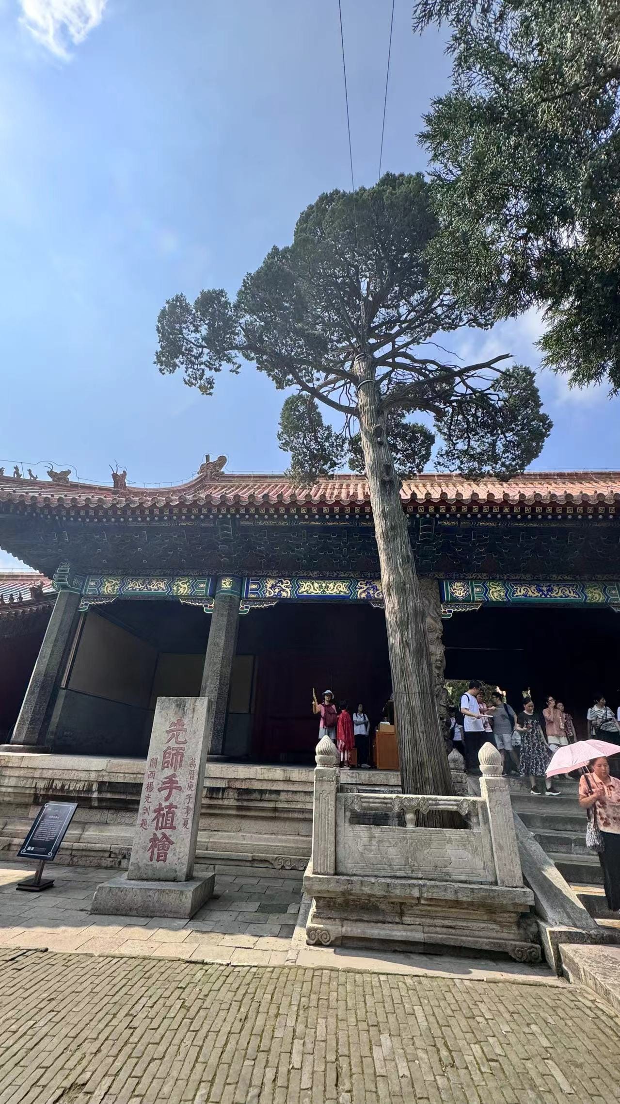 这颗,据说是孔子亲手种植的,但真正原来种下的那棵树已经死去,神奇的是,那颗的根部长出新树,如此反复了多次,才留下现在看到的这棵。
